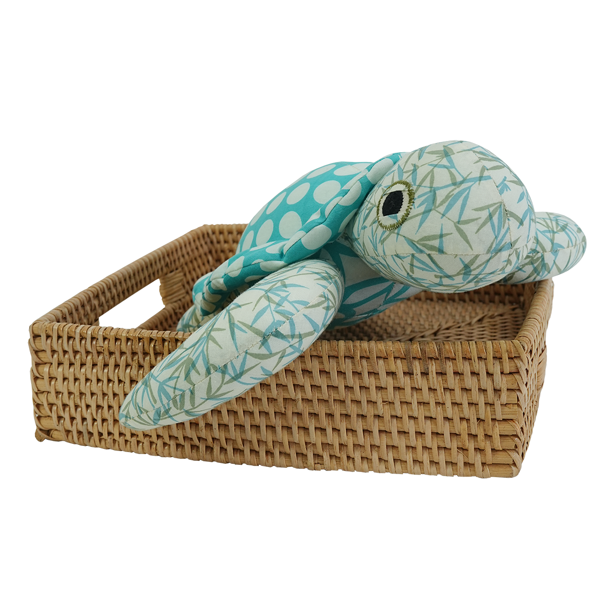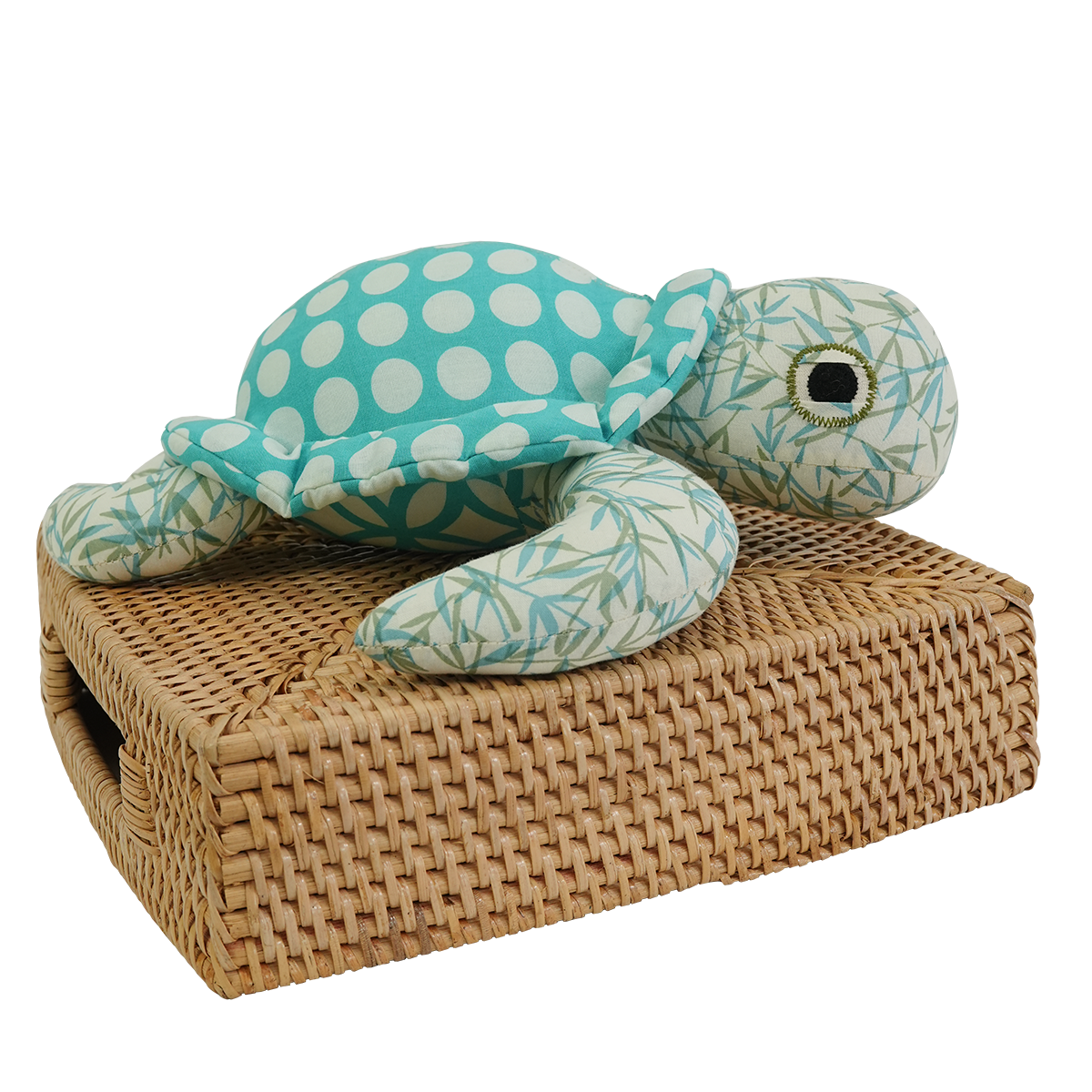 These handsome sea turtles are made mostly with remnant, of our eco-friendly print cotton fabrics They have hand embroidered eyes and was sewn and filled with recycled Eco-Fill Dacron in our in-house, fair trade workshop, in Bali. Safe to hand wash or dry clean as needed.