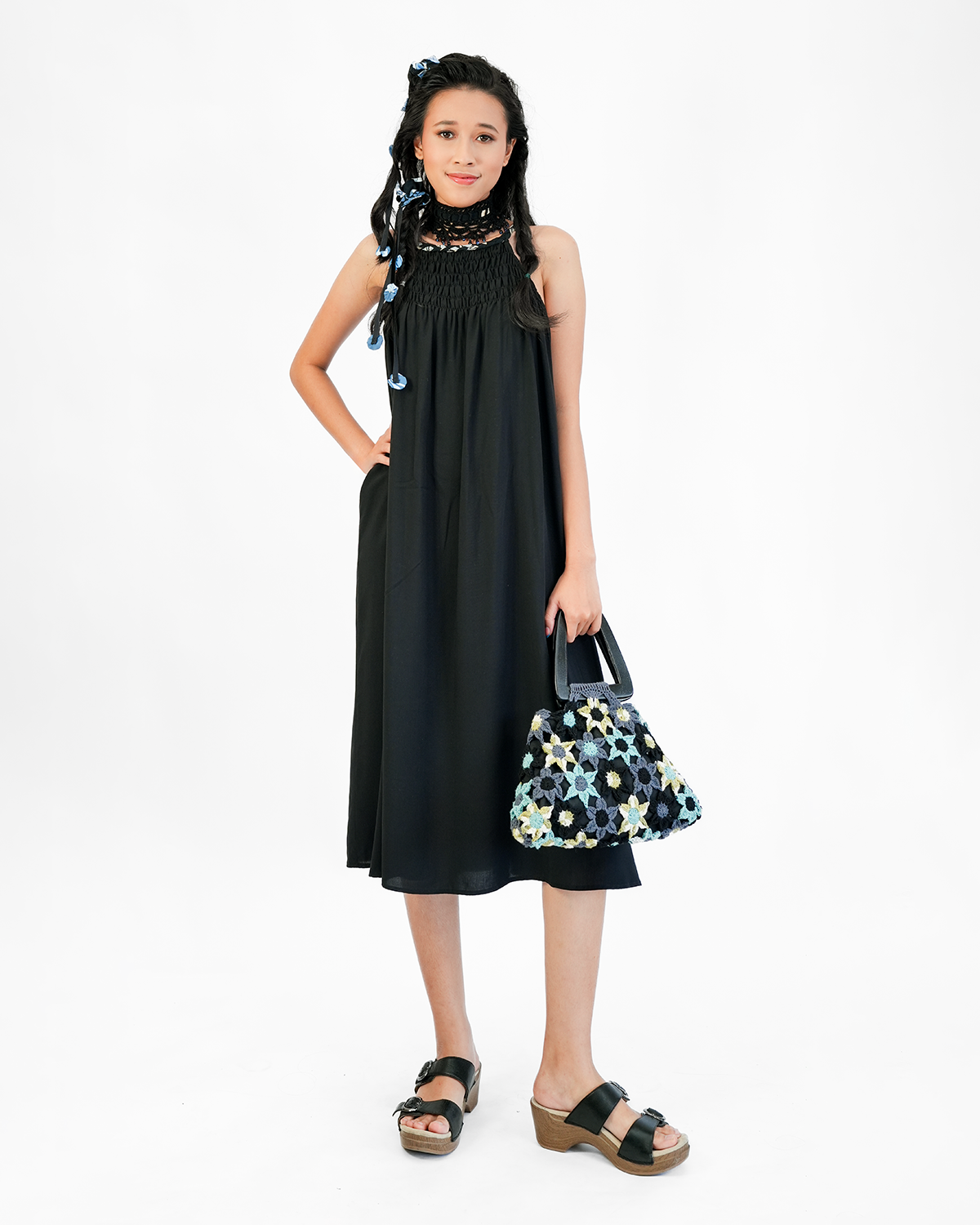 This beautiful dress, made of a luxurious rayon, is great to throw on over a bathing suit, to go shopping or out to dinner. The high waisted bodice is fully shirred with elastic thread for a snug & comfy fit. The neck and spaghetti straps are braided of the same soft rayon as the body. With its wide flowing skirt feel free to do ballet. It is with an eco-friendly, seaweed based dye, and was made with care in our fair trade, in-house workshop in Bali. Andrea designs each of our relaxed, versatile pieces to be part of a classic, timeless, minimalist wardrobe.