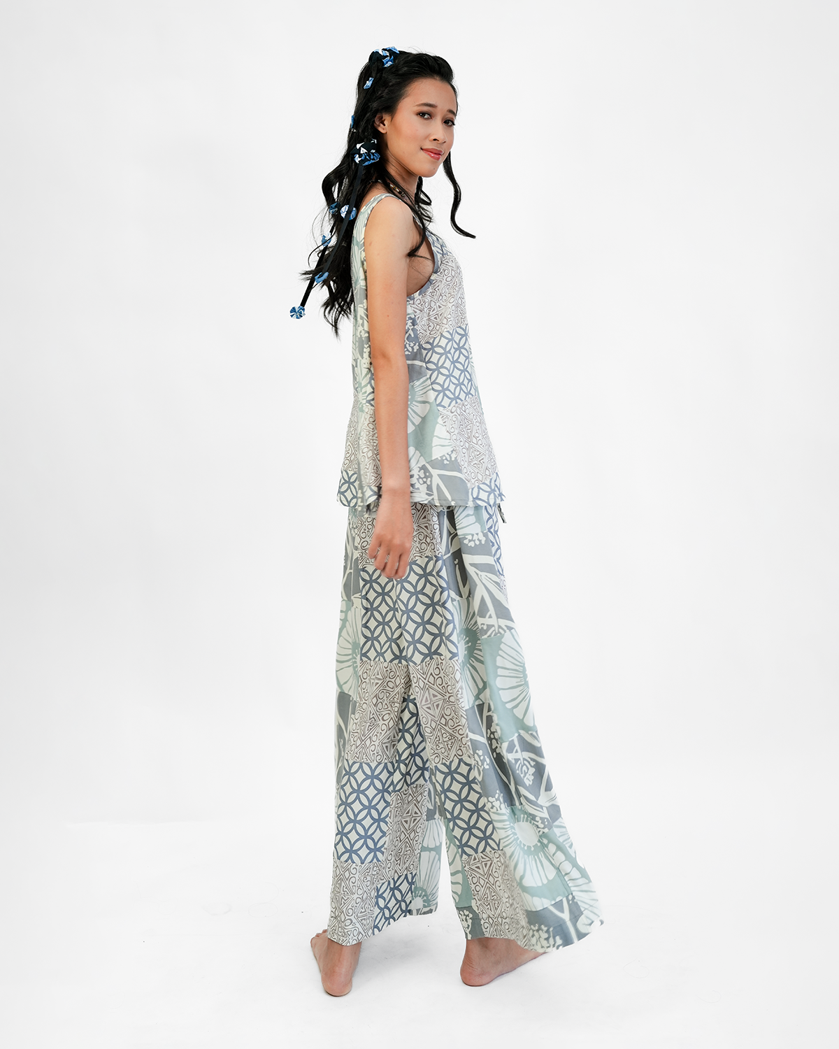 More about the top: This sleeveless top with a subtle drape is great to wear from day to night, flattering on all body types. Handmade in our fair trade workshop in Bali with a soft luxurious rayon in our Balizen hand silk-screened prints using eco-friendly, seaweed based dyes. Andrea & Lucy design each of our relaxed, versatile pieces to be part of a classic, timeless, minimalist wardrobe.